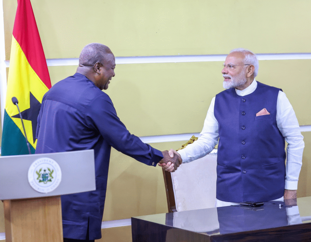 During his visit, Prime Minister Narendra Modi and President Mahama held wide-ranging talks at Jubilee House, agreeing to elevate bilateral ties to a “Comprehensive Partnership.” The leaders reaffirmed the strong, time-tested relationship between the two countries and outlined a roadmap for expanding cooperation in key areas such as trade and investment, agriculture, digital technology, infrastructure, defence, and people-to-people connections.